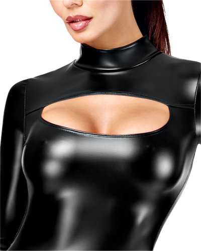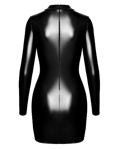 Langärmeliges Minikleid aus Powerwetlook mit Schlüssellochausschnitt